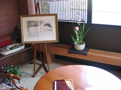 女将の間 さくらすみれ女将の居間 桜の季節が過ぎ、新緑が眩しい季節となりました。箱根の緑は本当に美しいものです。 当館から眺められる湯坂山と塔の峰は少し遅れて、緑が山に上っていきます。 山頂付近は山桜がまだまだ残っています。連休の喧騒の前の落ち着いた箱根をお楽しみ下さい。 館主拝 2014.4.24
